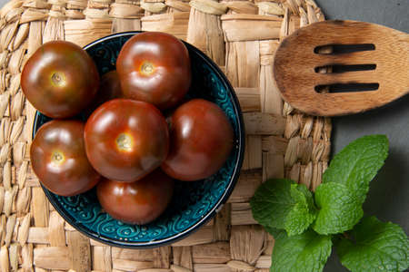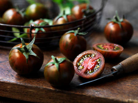 Healthy vegetarian food, reddish brown sweet kumato tomatoes close up