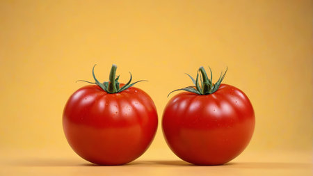 Still life of two red fresh tomatoes
