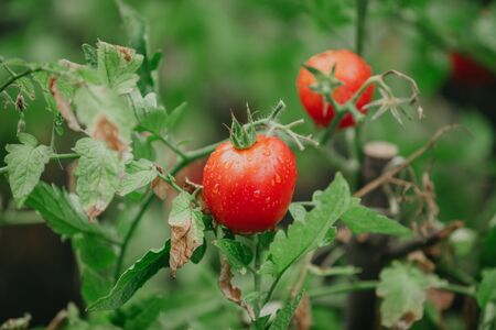 Beautiful tomatoes in the summer garden, natural concept