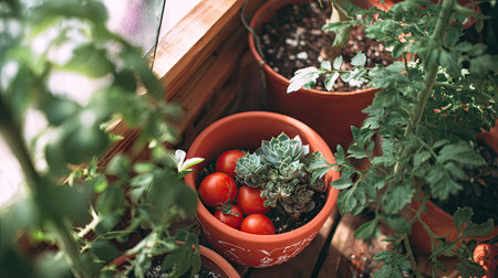 Fresh tomatoes on balcony garden. High quality photo