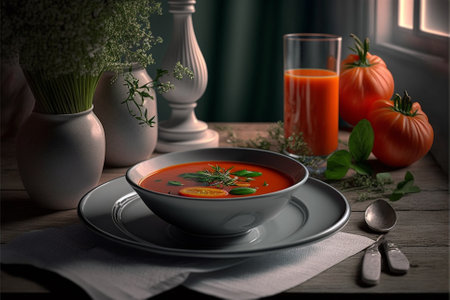 AI Generated. Tomato Soup with Fresh Tomatoes and Herbs