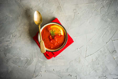 tomato soup on concrete background
