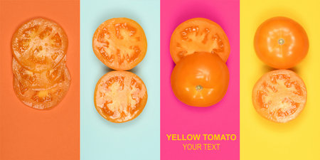 Creative layout made of yellow tomato. Food concept. High resolution photo. Full depth of field.