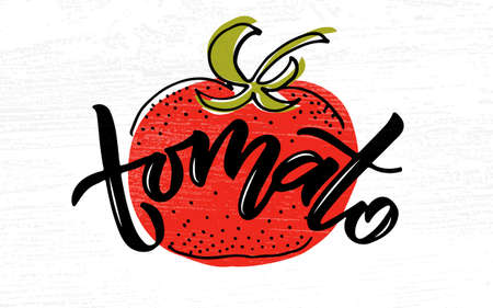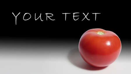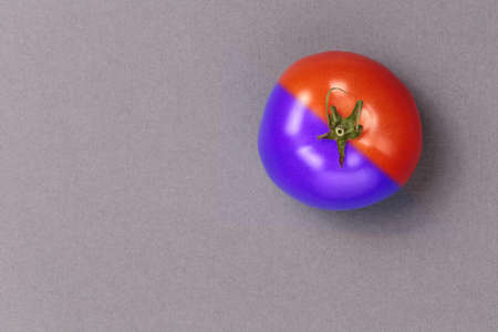 Top view popart tomato on black and white background. Pop art style tomato. Tomato purple and red color on grey background.