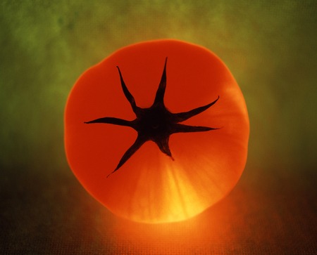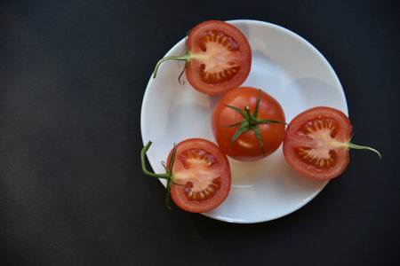 A half cut tomato isolated with a white background. Fresh healthy food, lifestyle concept, background.