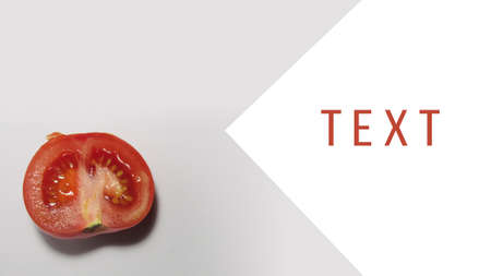 Juicy red sliced ​​tomato on a gray background. The design is perfect for a business card, splash screen, brochure or any other purpose.