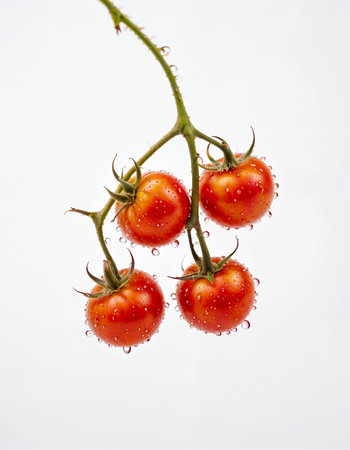 Bouquet of fresh ripe cherry tomatoes ready to eat on a bright white background
