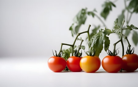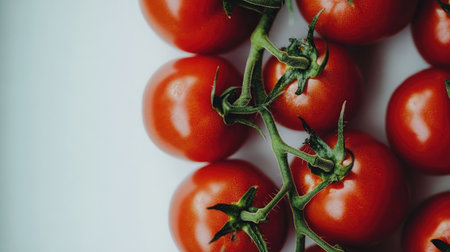 A stunning display of fresh red tomatoes arranged on a white background, showcasing their vibrant color and natural beauty, perfect for culinary use.
