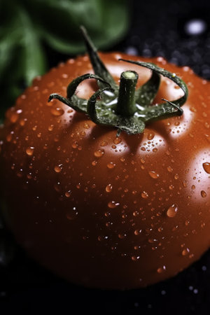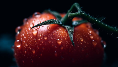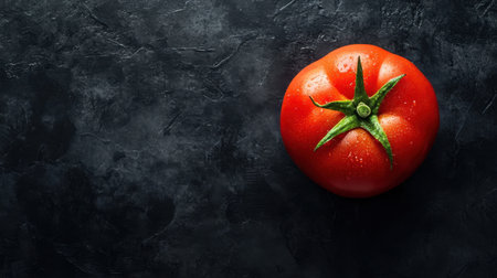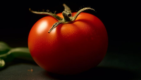 Fresh red tomato on a black background, showcasing vibrant color and healthy eating concept Perfect for food related content and healthy lifestyle imagery
