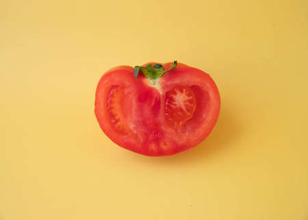 Ripe, Juicy Red Tomato Isolated on a Vibrant Yellow Background, Fresh Produce Photography