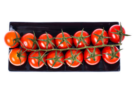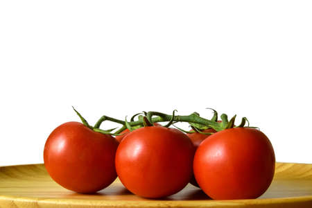 Cherry tomatoes branch isolated on white background. Red tomato. Tomatoes on a branch. Isolated background. Article about vegetables. Decoration. Copy space. Studio photo of vegetables