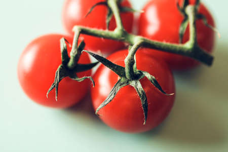 Group of fresh ripe cherry tomatoes selective focus macro shot with shallow DOF.