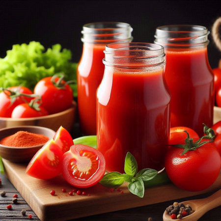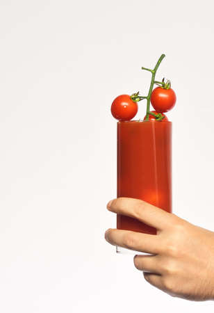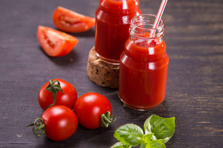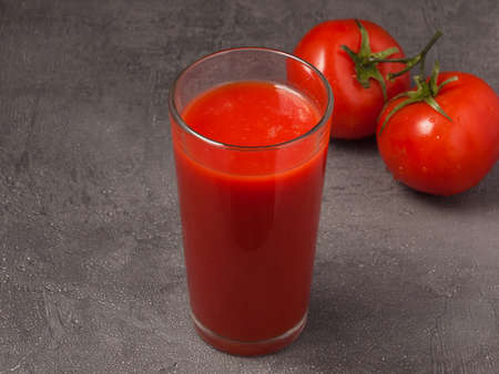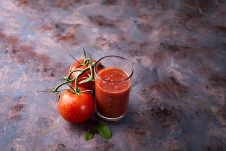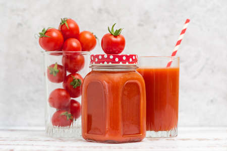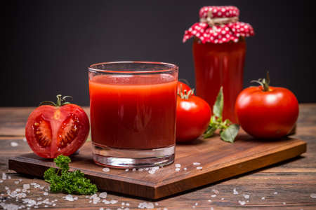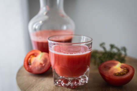 Freshly made and homemade red tomato juice. Tomato-based healthy breakfast or drink
