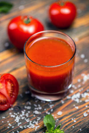 Tomato juice with salt and spices. Vegetable juice.