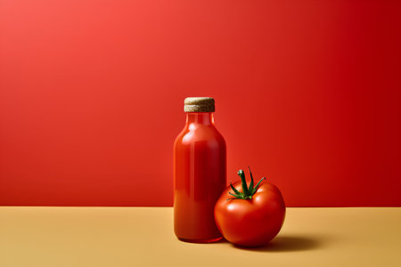 Tomato and ketchup bottle on a red background. 3d rendering
