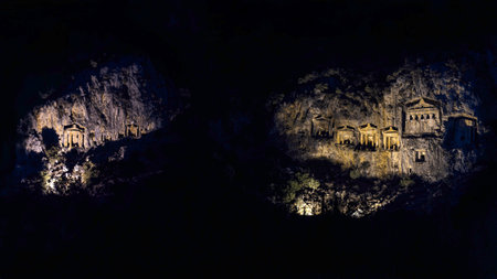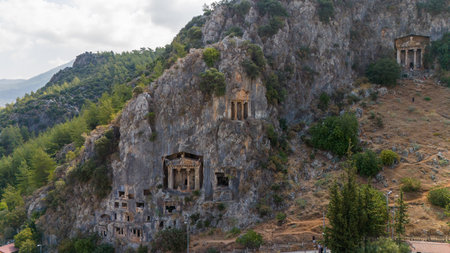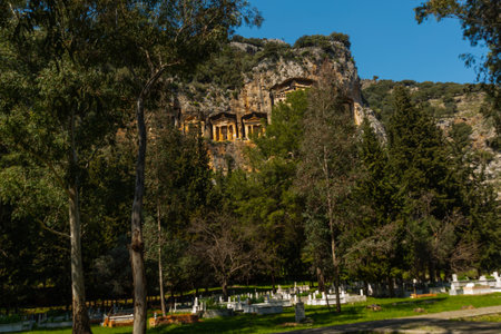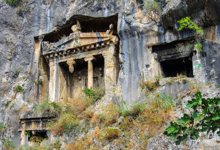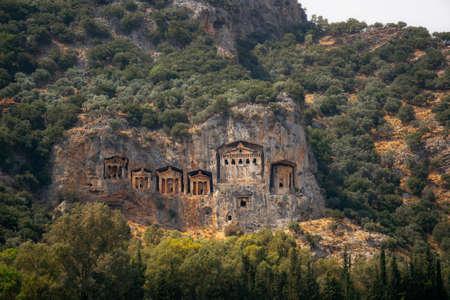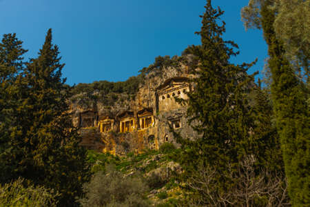 Ancient Lycian tombs carved into the rocks (Dalaman, Turkey)