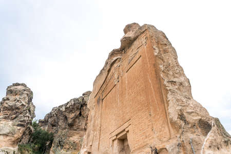 This is the largest of the Phrygian rock-cut monuments, Paleo - Phrygian inscriptions carved in the rock above it along the left side. The upper inscription dedicates the monuments to a King Midas and it is also known the Midas Monument Phrygian Mother Goddess - Magna Mater Temple
