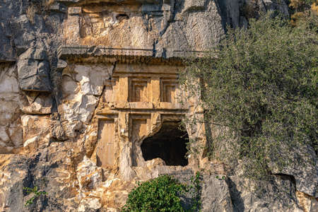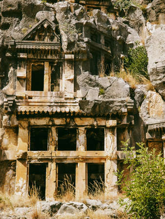 Ancient lycian rock tomb ruins in Demre, former Myra, Antalya, Turkey