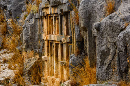 Entrance to the tomb of ancient civilization. Tombs are carved into the rocks on the territory of modern Turkey.