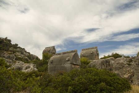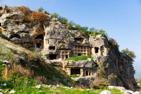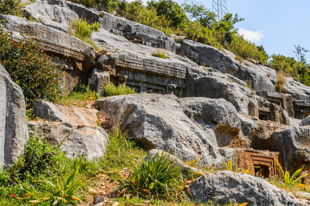 Antique rock burial chambers in ancient Lycian city of Tlos, Turkey