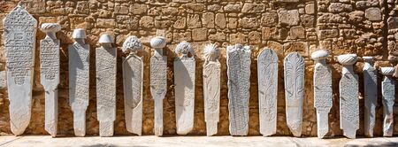 13 July 2025 Erzurum Turkey. Three tombs historical artifacts from Saltuk Era in Erzurum city center.