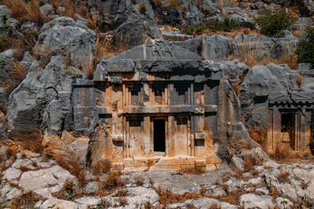 myra in turkey europe old roman necropolis and indigenous tomb stone