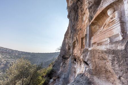 Exterior facade view of Adamkayalar,literally means man-rocks which located on top of Toros Mountains in Silifke,Mersin,Turkey.