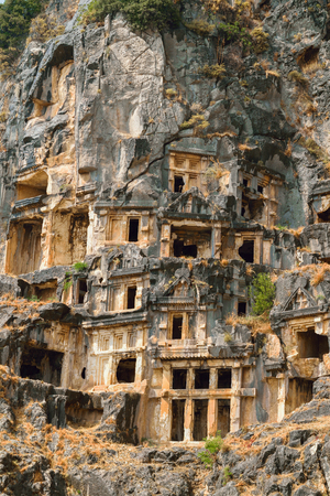 Ancient lycian Myra rock tomb ruins at Turkey Demre