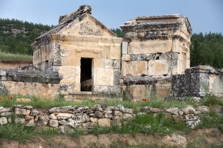 Ruins of tombs in necropolis, ancient Hierapolis, Pamukkale, Anatolia, Turkey.