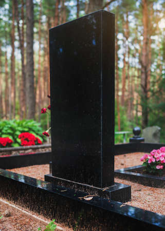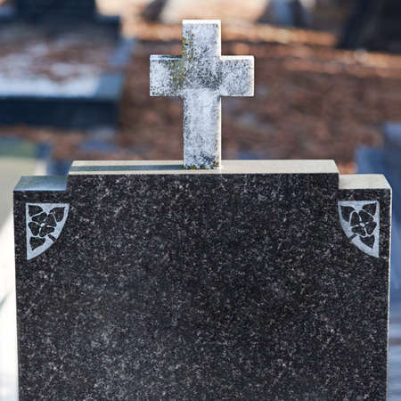 Gravestone on graveyard. Death, funeral and lost concept. Eternal rest idea.