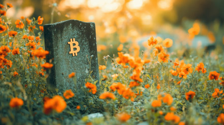 Gravestone Inscribed with 'Bitcoin RIP' in an Old Cemetery