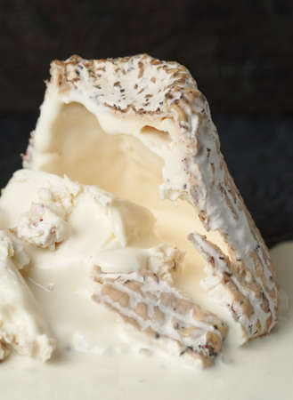 Studio schot of traditional goat cheese Valencay. Luxury food.