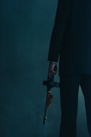 A man holding a gun in hand. - violence and crime concept.