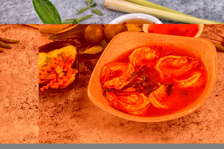 Traditional Thai Tom Yum Soup with Shrimp.top veiw..style hugge.selective focus