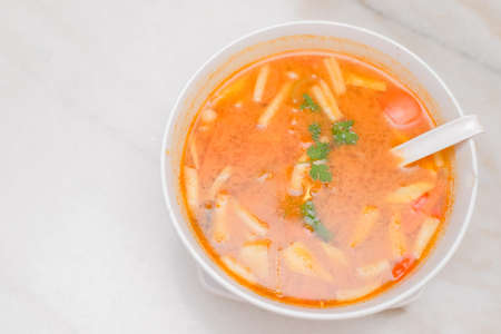 The portion of Tom Yum - famous Thai soup.