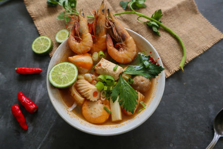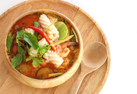 Thai spicy tom yam soup with seafood