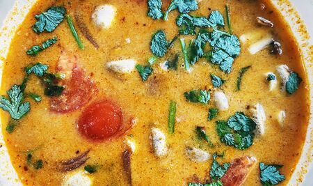 Savory Tom Yum soup close up