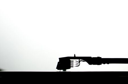 Close up shot on turntable arm hovering above record