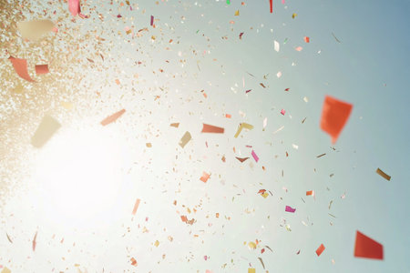 colorful confetti falling from the sky on a sunny day, created with generative ai