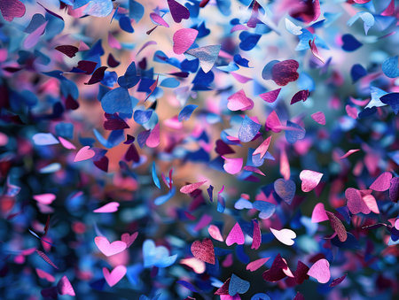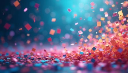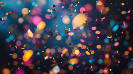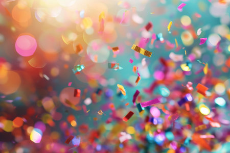 Colorful confetti dances in a blurred background, creating a festive and joyful atmosphere. Ideal for themes related to celebrations and special occasions.