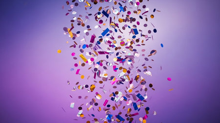 Vibrant explosion of colorful confetti in mid-air against a gradient background, creating a festive atmosphere. High quality photo