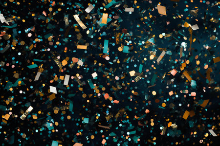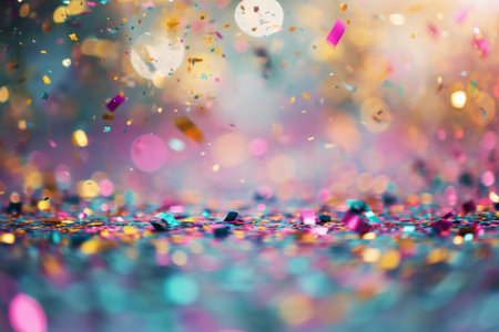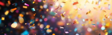 Colorful confetti and glitter sparkle against a dark backdrop for festive celebrations