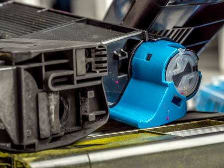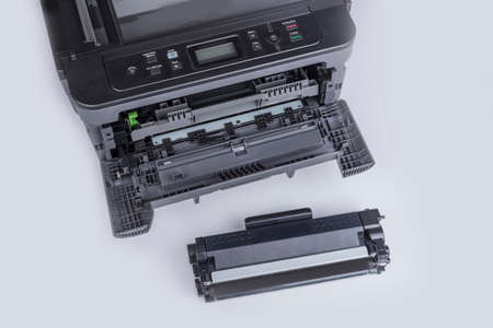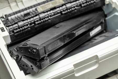 Laser cartridge toner refill concept. Office equipment maintenance concept.