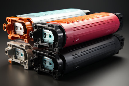 Toner Cartridges on Black background. A high quality image making by generative ai.