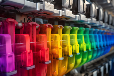 Vibrant colors in a row, crushed particle palette, shiny still life generated by artificial intelligence
