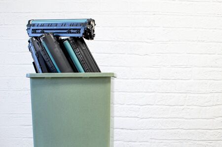 Toner cartridges for laser color printers and mfp, Maintenance and replacement of cartridges in printers concept