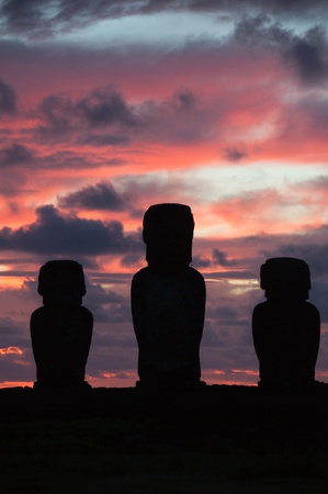 Spectacular moai platform silhouette at dawn
