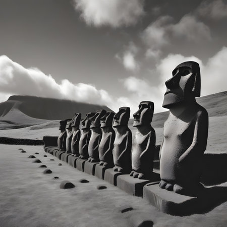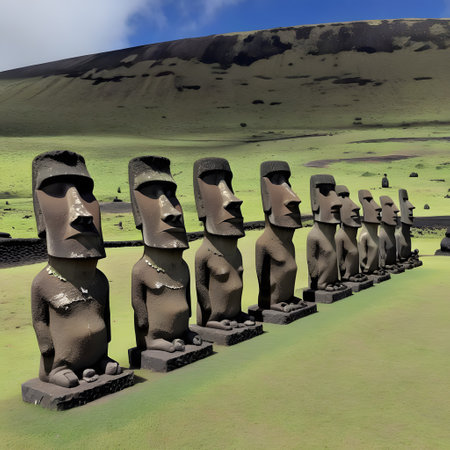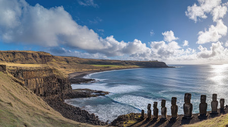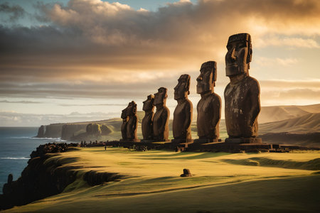 Imposing sculptures on Easter Island., generative AI