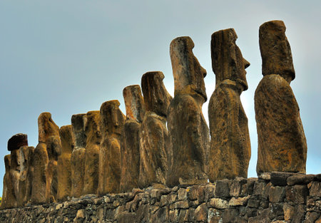 The ancient moai of Ahu Togariki, on Easter Island of Chile