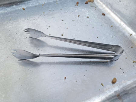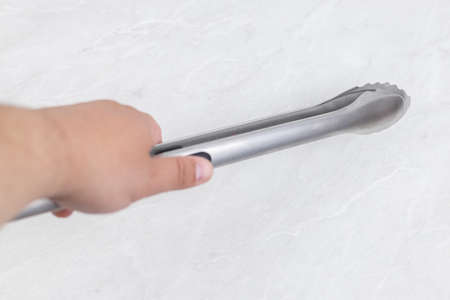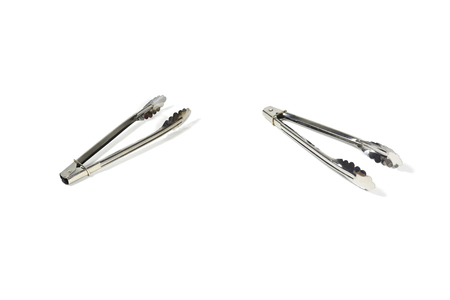 Kitchen tongs on a white background. Close-up metal kitchen tongs isolated on white background.